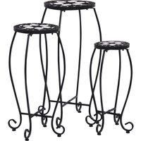 This mosaic table will make a great addition to your balcony or garden, serving as a coffee table to place your drink or any other necessity you need close at hand. Its powder-coated iron frame makes it very sturdy, while the ceramic table top is also easy to clean. This table is easy to assemble. Please note this product is not suitable to be left outside in cold condition. | Berkfield Home Mosaic Tables 3 pcs Black & White Ceramic