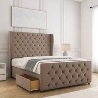 Experience luxury, comfort, and craftsmanship with our custom-made Divan Bed Base Set, tailored exclusively for you. Premium Quality Divan Beds: Customize your dream bed with up to 9 colors and 5 sizes. Choose from premium quality plush velvet materials and soft textured fabrics. Our beds follow UK Fire Regulation compliant. Complete Bed Set Includes: 54" Plush Velvet Upholstered Winged back Headboard and 20 Footboard. 2 Drawers Footend Side No Mattress 12" Divan Bases with chrome legs UK Handmade Fas...