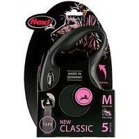 The medium flexi New Classic Tape Lead gives your dog freedom of movement when out on walks. The generous, very durable 5m-long tape automatically rolls back into the casing as you get closer to your dog. It lets your pet run around and explore, while still leaving you in control. The 5m retractable tape always stays taught, preventing it from dangling on the ground. This also makes it quick and easy to control the length of the lead using the short-stroke braking system, which functions at the touch of a button and offers you extra control when needed. There is also a permanent stop function which lets you fix the lead at a certain length. The medium flexi New Classic retractable tape dog lead is suitable for dogs weighing up to 25kg. It c... - Manufacturers part number: Flexi_