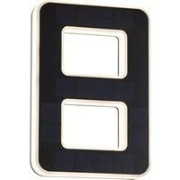 Outdoor solar house number in black with warm white lighting The solar house number is fitted with a solar module invisibly incorporated into the number, which charges the integrated, replaceable battery during the day, so that the illuminated house number can be attached to the façade, the property wall or any other location completely independently of a power connection. As soon as it gets dark, the house number is indirectly illuminated by the integrated, warm white LEDs. The light shines sideways through the satinized border of the number. - max. lighting duration with full battery 8 hours - Battery charging time 12 hours - Battery 1 x AAA 1.5V (micro), included Energy efficiency class:A+
