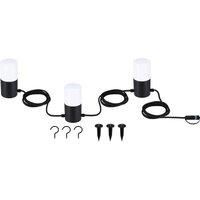 3-bulb outdoor fairy lights Tubs for the Plug & Shine 24 V system The Tubs fairy lights are an option for atmospheric outdoor lighting with the Plug & Shine low-voltage system from Paulmann. The three round heads are made of aluminium with an anthracite finish and white covers. A total of three E14 24 V filament LED bulbs with a warm white light colour are included. The Tubs fairy lights can either be hung with hooks (included) or used as decorative floor lighting with ground spikes (included). Suitable... - Manufacturers part number: 435834