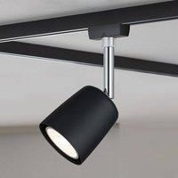 Black URail GU10 Spot Cover in cylindrical form The URail Spot Cover has a cylindrical shape, which tapers slightly narrower towards the top. The lower end has a straight, open end, which allows the light to exit directly and directionally. The chrome-coloured bracket contrasts with the black body, thus forming a subtle detail of this spot. The luminaire head is movable and can therefore be aligned as desired. Simple installation in a URail rail system is guaranteed. The GU10 socket can be fitted with a... - Manufacturers part number: 96926