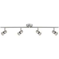Stylish 4 light spotlight bar in a brushed chrome finish. Swivel and tilt heads. Suitable for an array of rooms. Requires 4 x GU10 bulbs (sold separately). IP20: For Indoor Use Traditional Design Swivel & Tilt Steel Body Max. Wattage: 4 X 50W IP20: For Indoor Use Traditional Design Swivel & Tilt Steel Body Max. Wattage: 4 X 50W - Manufacturers part number: 397VX