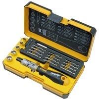 The Felo FE06072006 20 Piece XL-Strongbox Ergonomic K Mixed Screwdriver Bit set includes 1 ergonic k handle 181 x 38.5mm screwdriver also includes 5 metric sockets - 7mm 8mm 10mm 12mm 13mm includes 1 x adapter 6.3 - 1/4" (50mm). Includes 1 bitholder 6.3 x 150mm 12 industrial bit e 6.3 x 50mm: 4.0 x 0.8 6.5 x 1.2 PZ1 PZ2 PZ3 PH1 PH2 PH3 TX15 TX20 TX25 TX30. All items stored in strongbox 230 x 130 x 56mm. - Manufacturers part number: 0715764515