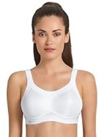 Work out in style in this maximum support sports bra. Featuring seamless moulded cups and wide, padded adjustable straps for added comfort and support. Water repellent fabric and net back for air circulation and breathability. Pair with a coordinating sports pant today. | Anita Women's Momentum Sports Bra in White | Size: 40F