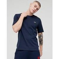 HUGO Dero Small Logo T-Shirt - Dark Blue Size & Fit Regular fit - order your usual size Model is 6'2" and wears size M Details Men's Logo Top by HUGO Dark Blue Crew neck Short sleeves Logo detail to left chest Crafted in single-jersey cotton for casual comfort Material & Care Material Content: Cotton. Washing Instructions: Machine Washable - Manufacturers part number: 50466158