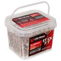 Patented Stick-Fit drive system allows smooth, stable driving and one-handed installation 2x high-quality Stick-Fit Driver Bits included in every Trade Tub Drive system 100% compatible with POZI and Phillips driver bits Type-17 'slash' point to drive through the hardest timber Double-angle self countersinking head 700 Screws & 2x Stick-Fit Driver Bits The Ulti-Mate Wood Screw is a trade-quality, high-performance woodscrew that can be used for fixing hardwood, softwood, man-made timber boards (e. g. MD...
