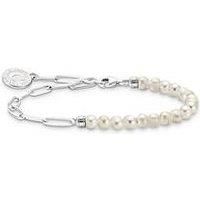 Charm Carrier: This charm bracelet delights with an exciting combination of cultivated freshwater pearls and a link bracelet inspired by anchor chains. The latter is made of high-quality 925 Sterling silver, the same goes for the end caps holding the freshwater pearls which are ornamented with engraved lines. The silver bracelet's end is embellished by a round, engravable THOMAS SABO Charm Club Charmista Coin which is hand-painted with shimmery, white cold enamel. The charm bracelet is available in dif...