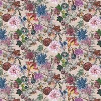 A vibrant floral display featuring vivacious dahlias and anemones. Bring the cheerful ambience of the garden to your space with this show-stopping design. Shown here with pretty pops of pink, green and blue. Set against a soft blush pink ground. - Manufacturers part numbers: 381755|Albany_38175-5