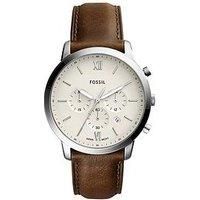 Watch by Fossil Real leather strap Stainless steel case Three hand movement Sub-dial, chronograph design Mixed indices Single crown to side Twin pushers Pin buckle fastening - Manufacturers part number: FS5380