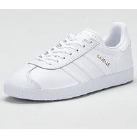 The legendary adidas Gazelle arrives for present day in triple white. The '60s icon still looks as fresh today as it did back then, with a full-grain leather upper and serrated 3-Stripe branding. Gold foil detail adds a premium edge to complete. UPPER: Leather & man-made,LINING: Fabric & man-made,OUTSOLE: Rubbercolour : White Product code : 3405761020