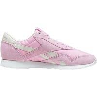 The Reebok Classic Nylon x FACE Women's Trainers in pink bring a playful and stylish twist to a classic silhouette. These trainers feature a mix of soft suede and synthetic materials, combining durability with a luxurious texture. The pastel pink upper is complemented by subtle off-white accents on the side stripes and heel tab, creating a feminine and fresh look. Designed for all-day comfort, these trainers include a lightweight EVA midsole for cushioning and support, along with a padded collar and to... - Manufacturers part number: BD2683