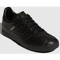 adidas Originals Junior Gazelle Trainers Size & Fit Available in sizes: 3 - 5.5 Older Details Gazelle Junior Trainers by adidas Originals Black Lace up fastening secures your fit Breathable OrthoLite sockliner offers comfortable cushion Smooth leather upper is durable and easy to clean Tonal 3 Stripe branding to quarter Durable rubber outsole Branding to tongue and heel for a touch of adidas Originals DNA Material - Manufacturers part number: QFLQR
