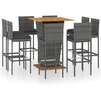 This stylish garden bar set provides you with a leisurely and comfortable time with your family and friends. Featuring a powder-coated steel frame covered with PE rattan, this counter table ensures years of outdoor use. Additionally, the solid acacia wood tabletop and base add extra sturdiness and stableness. The stools have a strong construction of steel frame and are made of weather-resistant PE rattan, ensuring stability and are easy to move. The cushion and footrest also add additional seating comfo...