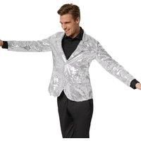 With its chic collar, this men's sequin jacket radiates a casual elegance. You'll outshine the disco ball; when the light changes or as you move around, the countless thin sequins start to magically glitz and glitter. The two shimmering see-through buttons create a wonderful contrast. The overall shimmering look is finished off by two decorative side pockets. The subtly tailored jacket is pleasant and comfortable to wear. Material: 100% polyester. Suitable for all fancy dress events, New Years Eve, Ha...