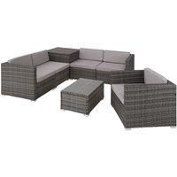 Smart, comfortable and versatile: this cosy, Pisa rattan garden furniture set from tectake will give you a place to relax and unwind in your home. The multifunctional ensemble of 5 seats, a table and storage box can be arranged as you like to suit your needs and space. The stable steel frame and the soft cushions ensure optimal comfort. This casual lounge set is easy to care for and creates the perfect place to chill and put your feet up. The sets comfortable sofas and armchair with small table allow yo... - Manufacturers part number: 403829