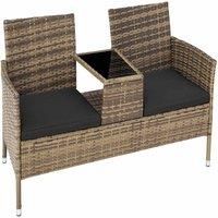 This easy to care for, polyrattan garden Bench from Tektake with its comfortable seat cushion promises relaxing hours together with a loved one in your garden, on the patio, balcony or in the conservatory. Polyrattan is especially suitable for outdoor use and fits wonderfully into the garden scenery. The Benches seat covers are removable and washable. Another highlight of this beautiful garden furniture is the integrated central table, which is situated between the two chairs, and is the perfect place f... - Manufacturers part number: 404560