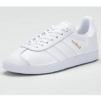 adidas Originals Gazelle Trainers Size & Fit Standard fit Available in sizes 3-8 Details End use: Lifestyle Men’s Gazelle Trainers by adidas Originals White Vintage appeal and athletic ethics are the reasons why the adidas Originals Gazelle is considered a true classic. Return in white leather they have a shiny tongue that separates it from the competition, with a tonal heel collar that excels in clean-cut simplicity. Lace fastening Material Material Content: Other Textiles Washing Instructions: W...