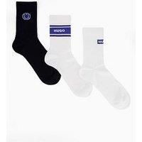 HUGO Blue 3 Pack Logo Sports Crew Socks Size & Fit True to size - order your usual size Crew length Available in sizes 5 - 11 Details Blue 3 Pack Logo Sports Crew Socks by HUGO White Pack of 3 pairs Ribbed design Plain sporty styles Mix of HUGO blue branding details Products must be returned unworn, unwashed, in their original condition with all tags and original order packing slip We reserve the right to refuse returns that show signs of wear or do not meet the above criteria