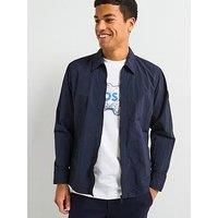 BOSS Leejay 1M Technical Over Shirt - Dark Blue Size & Fit True to size - order your usual size Regular fit Available in sizes S - 3XL (S:36", M:38", L:40", XL:42", 2XL:44", 3XL:46") Details Leejay 1M Technical Over Shirt by BOSS Dark Blue Long sleeves Zip fastening Collar Side slip pockets Material & Care Material Content: 100% Polyamide (recycled) Washing Instructions: Machine Washable