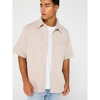 HUGO Blue Men's Short Sleeve Shirt Size & Fit True to size - order your usual size Regular fit Available in sizes S - 2XL (S:36"", M:38"", L:40"", XL:42"", 2XL:44"") Model is 6'3"" and wears a size Medium Details Blue Ebronn Waffle Short Sleeve Shirt by HUGO Light Beige Soft and breathable cotton-blend fabric HUGO logo patch to the chest Shirt collar Button front fastening Single chest pocket Short sleeves Curved hem Material & Care Material Content: 92% Cotton 8% Polyester Washing Instruc... - Manufacturers part number: 50540316