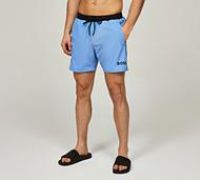 BOSS Starfish Swim Shorts in Bright Blue. Synonymous with fashionable clothing, BOSS gets us ready for the summer with these stylish swim shorts. Crafted from a lightweight polyester material with quick-drying properties, loosely cut with integrated briefs, handy side pockets, contrast side stripe and customary BOSS branding above left leg hem. Cause a real splash this season. Blue Size - M - Manufacturers part number: 50515191430