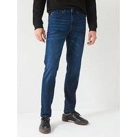 BOSS Onyx Bo Tapered Fit Jeans Size & Fit True to size - order your usual size Tapered fit Available in sizes 30 - 38 Details Onyx Bo Tapered Fit Jeans by BOSS Dark Wash Rear waistband tab Branded tab to coin pocket Branding to back pocket Belt loops Button front Five pocket styling Material & Care Material Content: 98% Cotton 2% Elastane Washing Instructions: Machine Washable - Manufacturers part number: 50533707