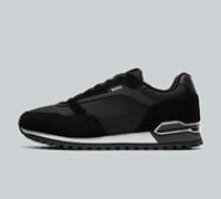 BOSS Parkour Run Trainers in Black. Premium low-cut trainers fused with classy contemporary flashes of brilliance. With a secure lace fastening closure, cushioned ankle collar, textile upper and BOSS branding to side, tongue and heel tab. This exquisite sporty silhouette sits atop lightweight EVA that delivers deluxe comfort with each and every step. Black Size - 7