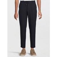 Boss C-perin 252 Tapered Fit Seersucker Trousers-navy Size & Fit True to size - order your usual size Tapered fit Available in sizes 46 - 56 Details C-Perin 252 Tapered Fit Seersucker Trousers-Navy by BOSS Dark Blue Chino trousers with tapered cut Mid rise Belt loops Drawstring fastening Plain print Material & Care Material Content: 68% Polyester 29% Viscose 3% Elastane Washing Instructions: Dry Clean Only