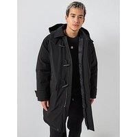 HUGO Mever2541 Regular Fit Hooded Quilted Coat Size & Fit True to size - order your usual size Regular fit Mid length Available in sizes S - 2XL (S:36", M:38", L:40", XL:42", 2XL:44") Details Mever2541 Regular Fit Hooded Quilted Coat by HUGO Black Warm quilted lining Removeable hood Collar neck Classic toggle fastening Long sleeves with adjustable cuffs Large flap patch pockets to the sides