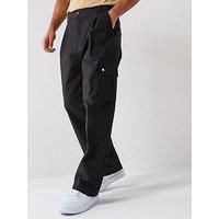 HUGO Straight Fit Graysen253 Cargo Trousers Size & Fit True to size - order your usual size Straight fit Available in sizes S - 2XL Model is 6'3" and wears a size Medium (M) Details Straight Fit Graysen253 Cargo Trousers by HUGO Black Cargo trousers with straight cut Regular rise Belt loops Plain Side cargo pocket with flap fastening Material & Care Material Content: 100% Cotton Washing Instructions: Machine Washable