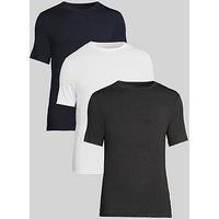 BOSS 3 Pack Bamboo Loungewear Slim Fit T-Shirts Size & Fit True to size - order your usual size Slim fit Available in sizes S - 2XL (S:36", M:38", L:40", XL:42", 2XL:44") Details 3 Pack Bamboo Loungewear Slim Fit T-Shirts by BOSS Assorted 3 x single T-Shirts Short sleeves Crew neck Plain Added stretch Material & Care Material Content: 95% Viscose - Bamboo - Cellulose 5% Elastane Washing Instructions: Machine Washable