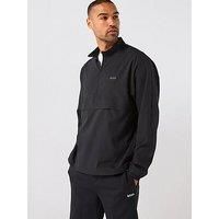 BOSS Cruiselite 1 Lightweight Jacket Size & Fit True to size - order your usual size Regular fit Regular length Available in sizes S - 2XL (S:36", M:38", L:40", XL:42", 2XL:44") Details Cruiselite 1 Lightweight Jacket by BOSS Black Stand up collar Water repellent coating Long sleeves with elasticated cuffs Half zip up fastening Breathable Quick Dry 4 Way Stretch Odour Control Material & Care Material Content: 100% Polyester Washing Instructions: Machine Washable