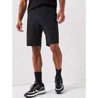 BOSS Flex Seersucker Shorts Size & Fit True to size - order your usual size Straight fit Available in sizes S - 3XL Details Flex Seersucker Shorts by BOSS Black Mid rise Elasticated waist Drawstring fastening Plain Front and back pockets Added stretch Material & Care Material Content: 85% Polyamide 15% Elastane Washing Instructions: Machine Washable