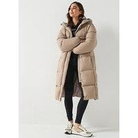 HUGO Long Hooded Puffer Coat - Light Beige Material Content: 100% Polyamide