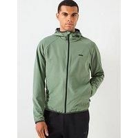 BOSS L_Commuter Lightweight Hooded Jacket Size & Fit True to size - order your usual size Regular fit Regular length Available in sizes S - 3XL (S:36", M:38", L:40", XL:42", 2XL:44", 3XL:46") Details L_Commuter Lightweight Hooded Jacket by BOSS Green Hooded Long sleeves Fixed hood Zip up fastening Side seam pockets with zip fastening Material & Care Material Content: 95% Polyester (recycled) 5% Elastane Washing Instructions: Machine Washable