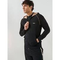 BOSS Mix & Match Loungewear Hoodie Size & Fit True to size - order your usual size Regular fit Available in sizes S - 2XL (S:36", M:38", L:40", XL:42", 2XL:44") Details Mix & Match Loungewear Hoodie by BOSS Black Long raglan sleeves Zip front fastening 2 front pockets Hooded BOSS logo to the left chest Cotton with a hint of stretch Mix and match bottoms available separately Material & Care Material Content: 95% Cotton 5% Elastane Washing Instructions: Machine Washable - Manufacturers part number: 50515313