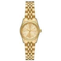 Michael Kors Lexington Three-Hand Gold-Tone Stainless Steel Watch Michael Kors' 26mm Lexington watch features a gold sunray dial, three-hand movement and gold-tone stainless steel bracelet. Depth: 8 MM Case Shape: Oval Movement: Automatic Strap Material: Stainless Steel Water Resistant: Y 26mm case, 14mm band width, mineral crystal, Quartz movement with 3-hand analog display, imported. Round stainless steel case, with a gold dial. Gold, stainless steel bracelet. Water resistant up to 50m: Wearable whil...