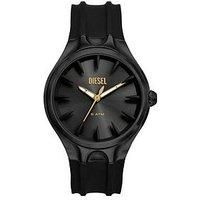 Diesel Men's D-Sruptor Three-Hand, Black Stainless Steel Watch Diesel's 44mm D-Sruptor Streamline watch features a black sunray dial, three-hand movement and black silicone strap. Depth: 9 MM Height: 200 MM Width: 44 MM 44mm case, 20mm lug width, mineral crystal, Quartz movement with 3-hand analog display, imported. Round stainless steel case, with a black dial. Black, silicone band. Water resistant up to 50m: Wearable while swimming in shallow water.