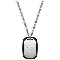 Armani Exchange Mens Stainless Steel Dog Tag Necklace, AXG0169040 A brushed silver-tone stainless steel dog tag hangs from a sleek chain, showcasing clean lines and a minimalist aesthetic. The lobster clasp ensures a secure closure, while the understated finish highlights the precise craftsmanship that defines this piece. Subtle and modern, it's designed for effortless wear. Depth: 650 MM Height: 30 MM Width: 12 MM Clasp: Y Clasp Type: Lobster Claw Clasp Expandable: N Fashion Jewellery Type: Nec... - Manufacturers part number: AXG0169040