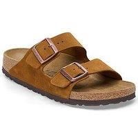 Birkenstock Arizona Suede Sandal Size & Fit True to size - order your usual size Standard fit Available in sizes 3 - 8 Details Arizona Suede Sandal - Mink by Birkenstock Brown Cork latex footbed Suede upper Slip on style EVA sole Double strap with adjustable pin buckles Lining: Leather Sole: Other Materials Upper: Suede