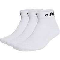 adidas Unisex Linear Ankle Cushioned Socks 3 Pairs, White/Black, 10.5-12.5