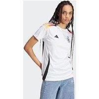 adidas Womens Germany 2025 Home Shirt Size & Fit True to size - order your usual size Regular fit Available in sizes XS - XL Details Womens Germany 2025 Home Shirt by adidas White Crew neck Short sleeves Team badge Washing Instructions: Machine Washable