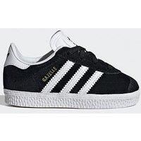 Add some fresh adidas Gazelle trainers to your little ones rotation! Arriving in toddler sizes - these trainers boast a black suede upper and contrasting white branding. A matching white outsole completes this iconic look! Ready to cop£ - Manufacturers part number: Adidas_2500087250-230