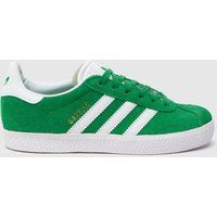 adidas introduce the Gazelle trainers in junior sizes! These iconic kicks boast a bright green suede upper, white leather branding and a bright white rubber sole unit. These retro inspired classics are perfect for pairing with your mini-me!