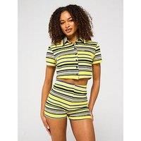 adidas Originals Women's Towel Button-Up Tee Size & Fit True to size - order your usual size Regular fit Available in sizes XS - XL Details Women's Towel Button-Up Tee by adidas Originals Yellow All-over stripe detail Soft polo collar Button front fastening Short sleeves Embroidered logo to chest Washing Instructions: Machine Washable