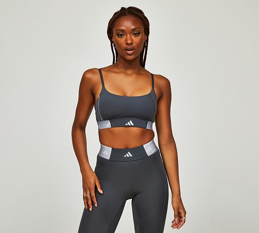 adidas Womens Hyperglam Bralette in Grey Six and Glory Grey. Comfort and confidence come as standard here as this versatile training bralette makes a dramatic entrance into your workout gear. Equipped with AEROREADY moisture-wicking technology that keeps you dry and fresh, with adjustable shoulder straps to attain your optimal fit, flattering tight fit, curved neckline, no padding, elasticated bottom band and sleek metallic detailing for on-point styling. With a nice smooth cold feel, offering up light ...