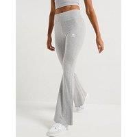 adidas Originals Womens Essentials Rib Flared Leggings in Medium Grey Heather. Super-sporty but also super-stylish so they'll look as good in casual settings as they feel lounging around the house. With a flattering tight and stretchy fit that opens up into flared hems, elasticated high-rise waist, full length, and finished off with that famous adidas Trefoil motif embroidered into left thigh. Grey Size - XL - Manufacturers part number: WAHZH