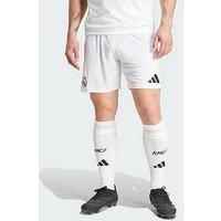 adidas Real Madrid 24/25 Home Shorts Slip into these adidas Real Madrid home shorts and feel the passion of the Bernabu. Part of a football kit that celebrates Madrid traditions, they show off an embroidered team badge. Moisture-managing AEROREADY keeps supporters dry and comfortable while they shout for their team. This model is 186 cm and wears a size M. Their chest measures 99 cm and the waist 80 cm. Material Content: Recycled polyester 100 % Regular fit Drawcord on elastic waist 100% polyester (recy...