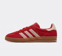 adidas Originals Womens Gazelle Indoor Trainers in Better Scarlet, Wonder White and Gum 3. Stylish and retro-inspired sneaker rooted in the design legacy of the 1960s. This version features a premium suede upper for a luxurious feel, contrasted by the classic adidas 3-Stripes in white. The shoe is completed with a gum rubber outsole, providing both durability and a vintage aesthetic. Funky embroidered feature to side stripes and heel tab. Red Size - 4